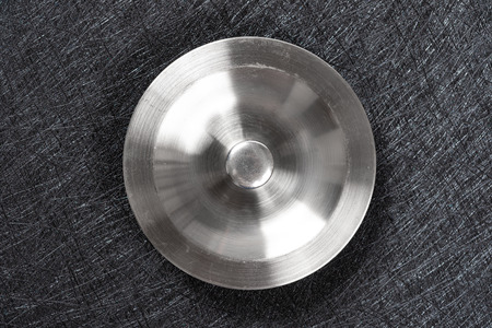 top view of metal sink plug on dark background