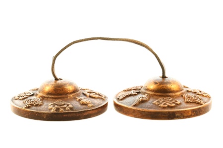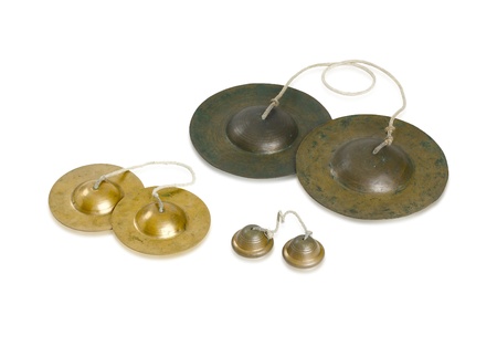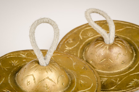 Bronze cymbals castanets Thai asian music percussion instrument on white background