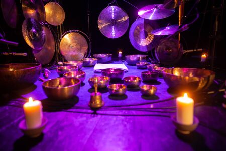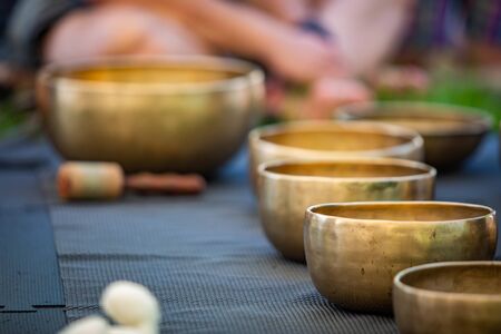 Music therapy on the special kind of musical bowls, relax, rest for mind, instrument concept