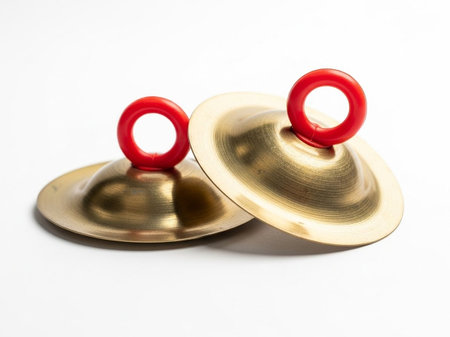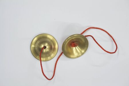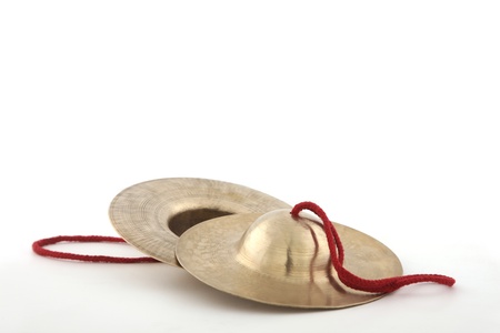 Chinese tradition percussion instrument - China small cymbals isolated on white, usually it used with the gong and the drum together forms the Chinese percussion instrument team .
