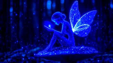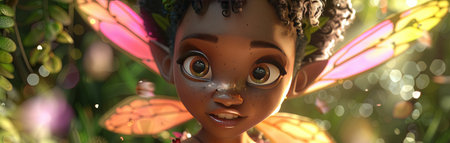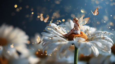 An Ai generative image of little fairy with butterfly and flowers in nature.