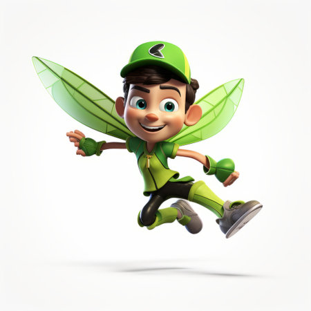 the cartoon character, inspired by the playful cartoons of bartolome esteban murillo, is depicted jumping in the air. created in a photorealistic style, the character is rendered in shades of light green and dark emerald. the artwork, by mike campau, showcases a unique twist as the character is made entirely of insects, resulting in a smooth and shiny appearance. ai generated