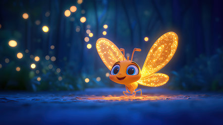 Magical Firefly in Night Forest. Abstract Fairy Tale Art. Generative AI Background.