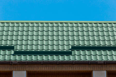 The roof from a metal tile of green color