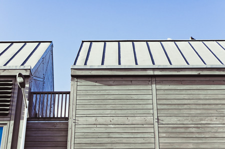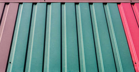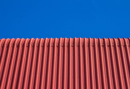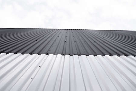 Metal structure iron tile roof covering house background.