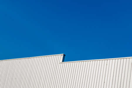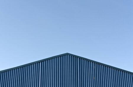 Blue modern warehouse roof against blue sky. Background for design.