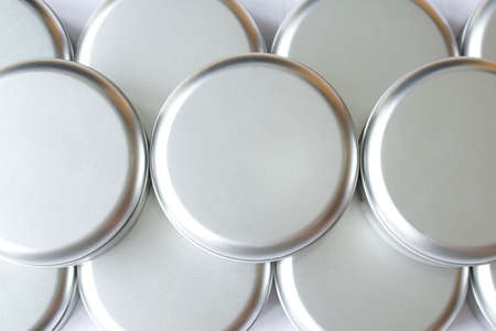 Many round tin boxes from top view