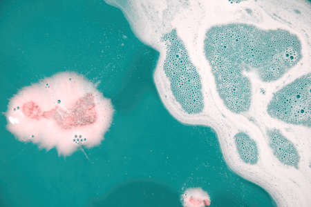 Decorative colorful aroma foam in the turquoise bath water. Abstract backgrounds and patterns