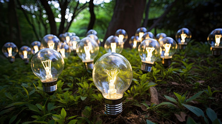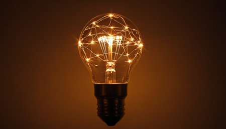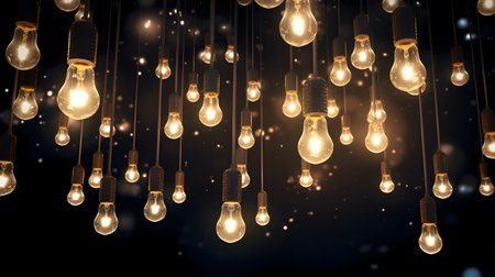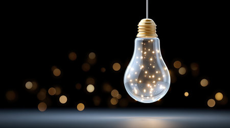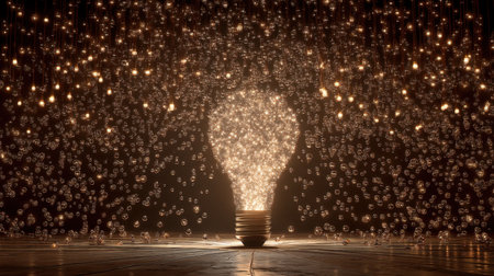 Glowing light bulb surrounded by cascade of sparkling lights creates magical atmosphere, symbolizing creativity and inspiration. scene evokes feelings of wonder and innovation