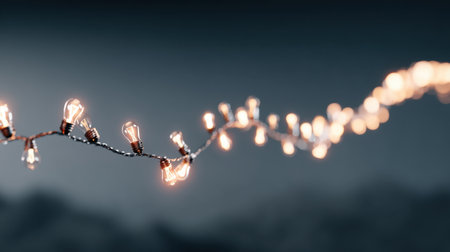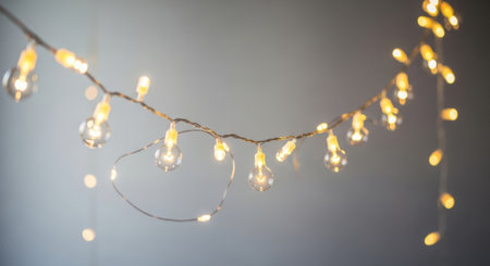 A beautifully illuminated string of glowing light bulbs creates a magical ambiance. The soft blurred background enhances the warm, festive atmosphere for special moments.