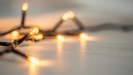 Warm Glowing String Lights on a Soft Grey Surface Creating a Cozy and Festive Atmosphere at Night