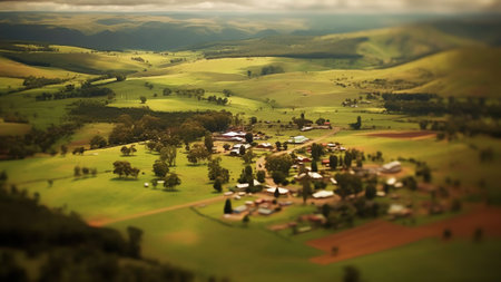Generative AI : Aerial view of countryside with houses on the hills in Queensland Australia