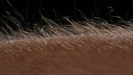 square background with close-up facial skin texture of a man covered with fine and coarse hairs and bristles