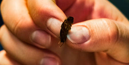 Tiny bug on the tip of finger