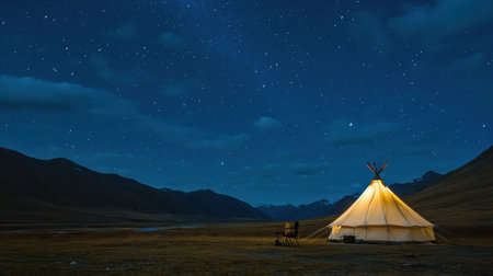 Discover the captivating beauty of a night sky filled with stars above a traditional tent in a remote wilderness. This serene scene embodies peace and adventure, inviting exploration and tranquility in nature's embrace.
