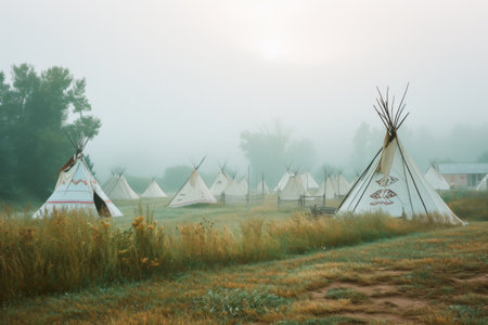 Teepees in a Meadow. A Glimpse into Native American Heritage and Peaceful Outdoor Living.