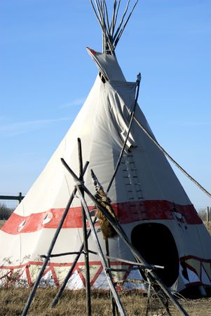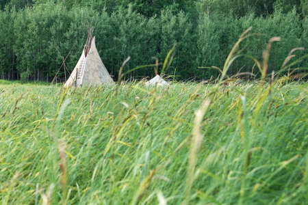 indian ethnic domicile, teepee AKA wigwam on the meadow