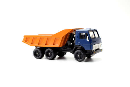 Russian truck KAMAZ. Miniature replica of a car isolated on a white background.