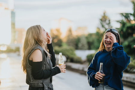 Two Friends Laughing Together While Enjoying a Relaxing Outdoor Moment