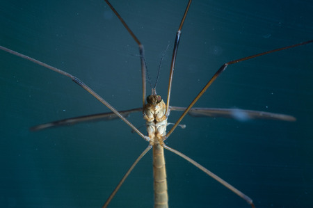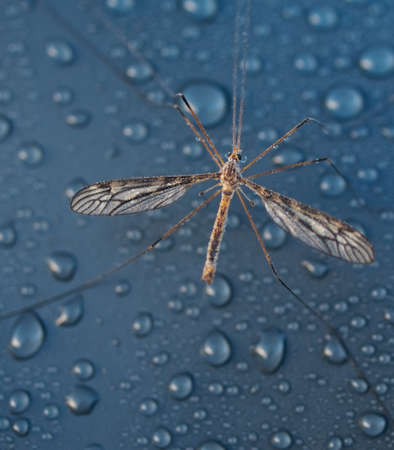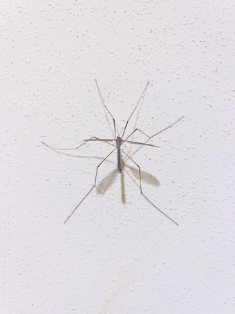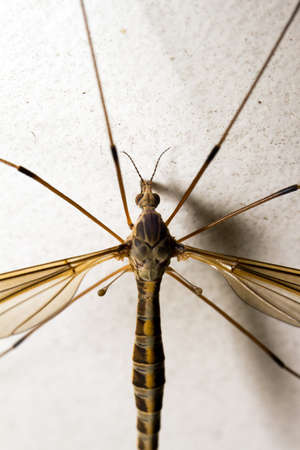 long-legged mosquito, caramore, tipulidae on a white wall close up