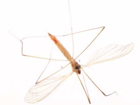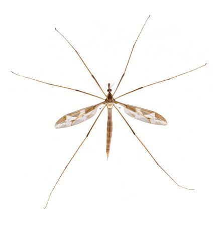Crane fly, long legged mosquito in dorsal view, Tipulidae, Crane fly or daddy long legs, Tipula maxima, white background