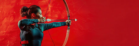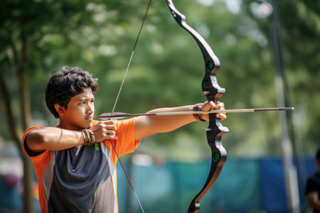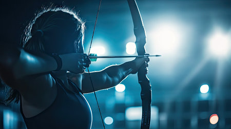 Dynamic archery shot, highlighting athleticism and motion, ideal for summer olympics concept.