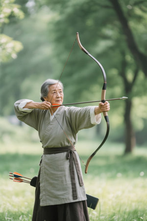 The old woman practiced archery with grace and skill