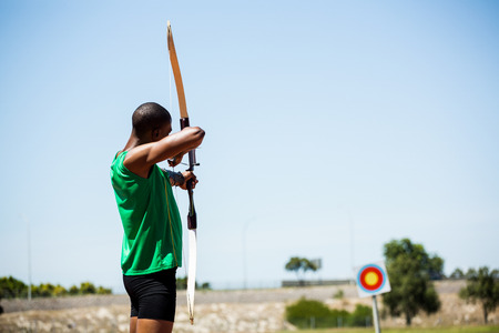 Rear view of sportsman doing archery