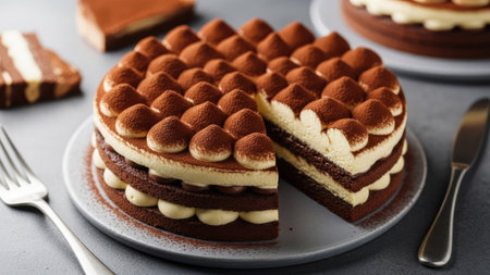 A creamy and rich tiramisu with layers of mascarpone and espresso created with Generative AI
