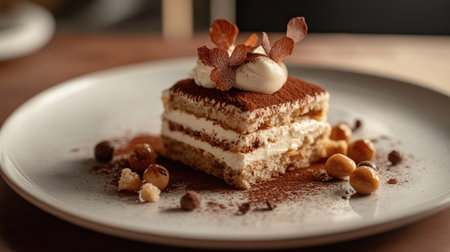 AI Generated. Delicious Tiramisu Slice on a Plate with Garnish