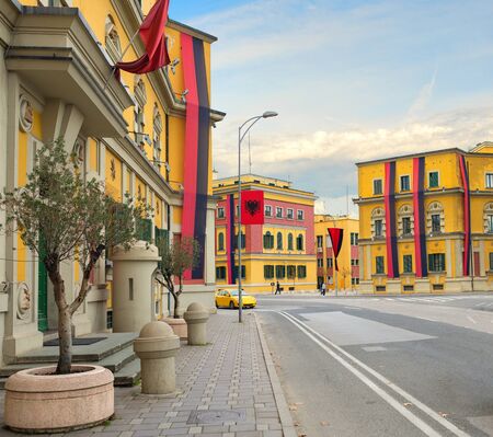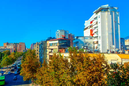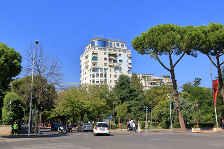 September 09 2023 - Tirana in Albania: Typical buildings and streetlife in the city centre of the albanian capital
