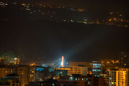 Night sky with stars and moon over new centre of Tbilisi city, Georgia