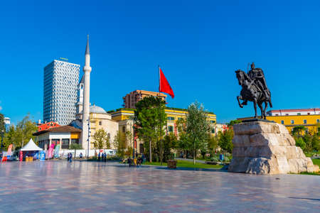 TIRANA, ALBANIA - CIRCA MAY 2019 Skanderberg square