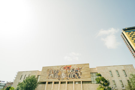 Tirana, Albania. March 2023. exterior view of the National Archaeological Museum in the city center