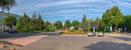 Ternopil, Ukraine 06.07.2021. Theater square in Ternopil, Ukraine, on a sunny summer morning