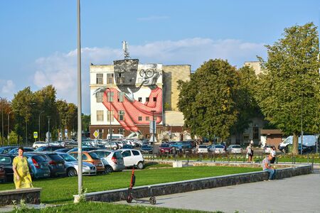 Kaunas, Lithuania, August 30: City car Parking in the old part of Kaunas, August 30, 2019.