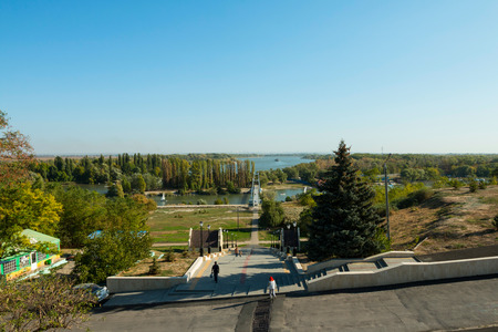 Volgograd, Russia - August 26, 2019: Staircase leading from the Volga River embankment to the Museum-Reserve Battle of Stalingrad, Volgograd, Russia