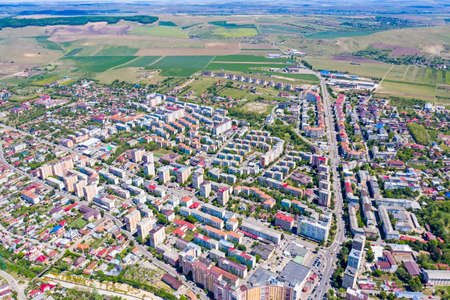 Above view of summer city in Romania, aerial landscape of Piatra Neamt
