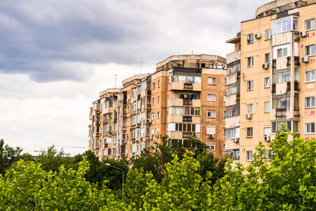 Block of flats. Apartament buildings in Bucharest, Romania, 2020.