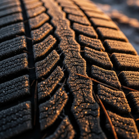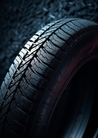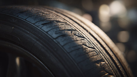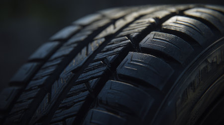 car tire tread close-up, focus on wear indicators, created with generative ai