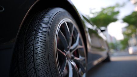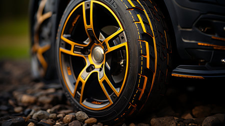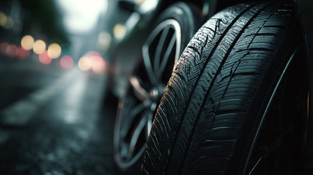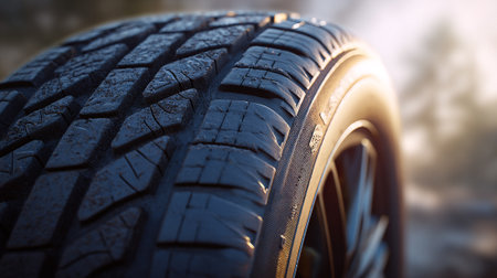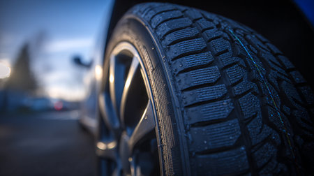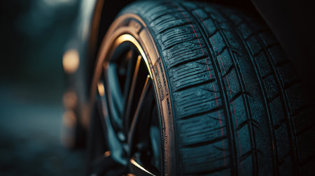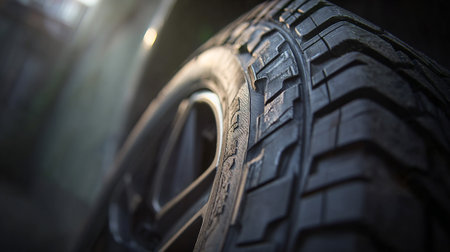 Car tires close-up with shallow depth of field, selective focus