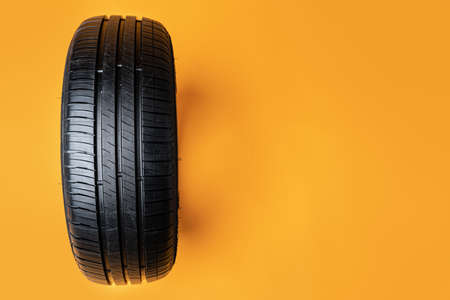 Car tires isolated on yellow background, close up