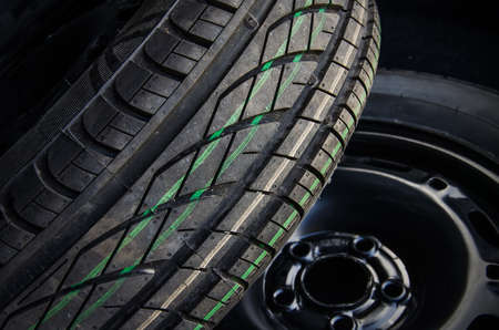 Close-up of car tire. Car tire background. Car tyre texture.