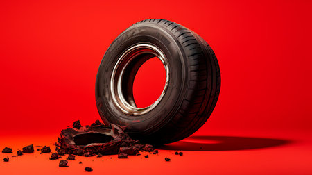 Car tire on red background with copy space. 3D illustration.