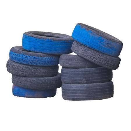 Stack of old used tires isolate on a white background close-up.