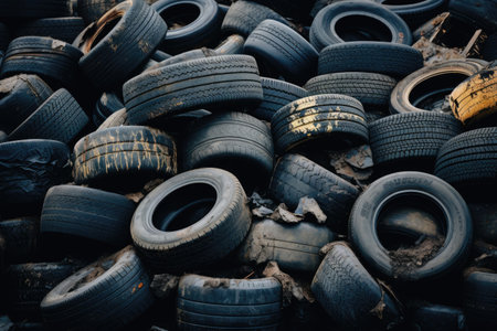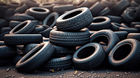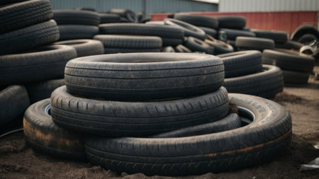 Polluted environment with old used car tires. Generative AI