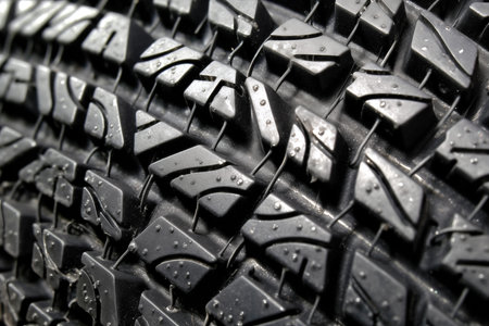 studio close up of wet winter tire tread in the rain