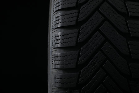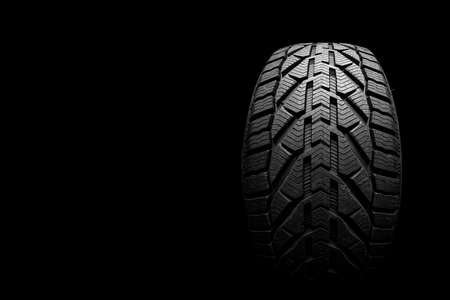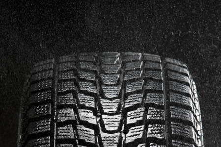 Winter tire on black background, closeup. car maintenance