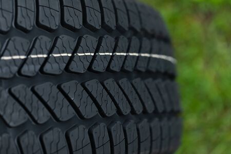 Winter tire close-up. Texture of car tire tread.