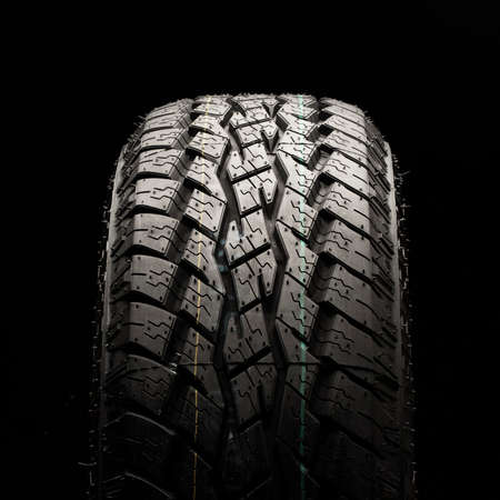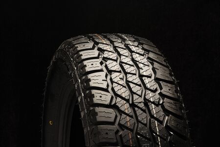 all terrain new tire close-up on a black background